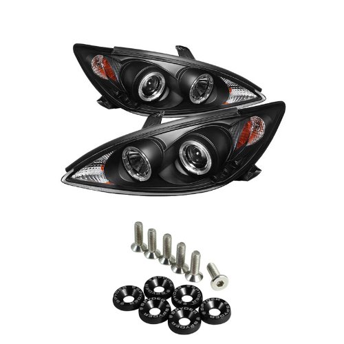 FeaturesToyota Camry 02-06 Halo Projector Headlights - BlackApplication is straight-forward, the mounting point is identical to the OEM headlights, and it using a plug and play installation method for the low and high beam(no soldering or splicing of the wires involved with one exception for the halo rings). Extra wires spicing will be needed for LEDs and Halos; Low and high beam bulb size are different than the original light. Headlights are designed for specific year, and model, please refer to the description for detail applicationThis combo comes with Spyder Auto washer dress up kit-Black. Manufacturered by leader in the industry SPYDER! This product will dramatically improve the look of your vehicle.Some of the package includes light bulbs, for package which does not come with any light bulbs, you can apply the stock light bulbs for installationAll Headlight packages will come as a pair left side and right side; designed as direct bolt-on replacement parts + Washer dress up Kit Toyota Camry Halo Projector Headlights - Black & Spyder Washer 6pcs - Black?