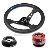 NRG-SRK-100H+016R-BK+200RD, NRG Innovations 13.78" 350mm 3" Deep Dish Style Black Leather Blue Center Marking Racing Steering Wheel Combo with 6 Hole Short Hub Adapter with Gen 2.0 Red Quick Release Kit SRK-100HNRG Quick Release features many options that conventional ball-locking quick release system do not. It is specially engineered with raised sections to prevent the scratching and stretching of the hub while a self locking feature adds increased safety and functionality. Features racing styled for added style and look. Each unit is made from the highest quality aircraft grade aluminum and is anodized for maximum durability and finish.