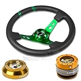NRG-SRK-140H-RG+016R-GN+200RG, NRG Innovations 13.78" 350mm 3" Deep Dish Style Black Leather Green Center Marking Green Spokes Racing Steering Wheel Combo with 6 Hole Short Hub Adapter with Gen 2.0 Rose Gold Quick Release Kit SRK-140H