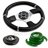NRG-SRK-121H+008R+650GR, NRG Innovations 13.78" 350mm Black Leather Racing Steering Wheel Combo with 6 Hole Short Hub Adapter with Gen 3.0 with Handle Green Quick Release Kit SRK-121H