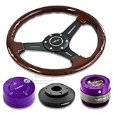 NRG-SRK-175H+200PP+101PP+015RBK, NRG Innovations 13" 330mm Deep Dish Style Wood Grain Black Spokes Racing Steering Wheel Combo with 6 Hole Short Hub Adapter with Gen 2.0 Purple Quick Release with Purple Lock Hub Kit SRK-175H